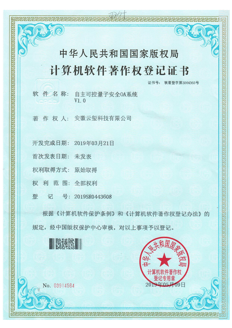 云璽量子是合肥市量子信息產業重點企業,國家信創工委會成員企業,中國信創500強企業。主營業務包括量子安全智能印簽、量子安全智能辦公、量子安全云服務,為政企客戶提供量子安全整體解決方案。